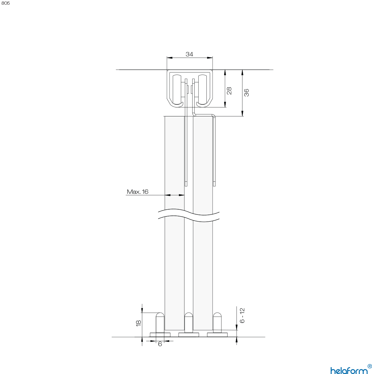 30 kg/doorDo-It-Yourself fittings set package 805 for 75 series sliding wardrobe and cupboard door systems. Fittings set 805 includes all the needed fittings for two sliding wardrobe door installations and a 2 meter aluminium track. The package includes an aluminium track, four sliding door hangers, three bottom guides, assembly instructions and screws.