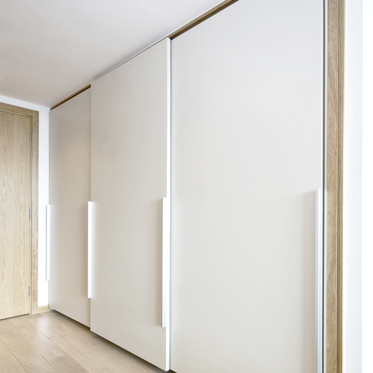 75 series is used in light wardrobe and cupboard sliding doors, where there is limited space for the track.