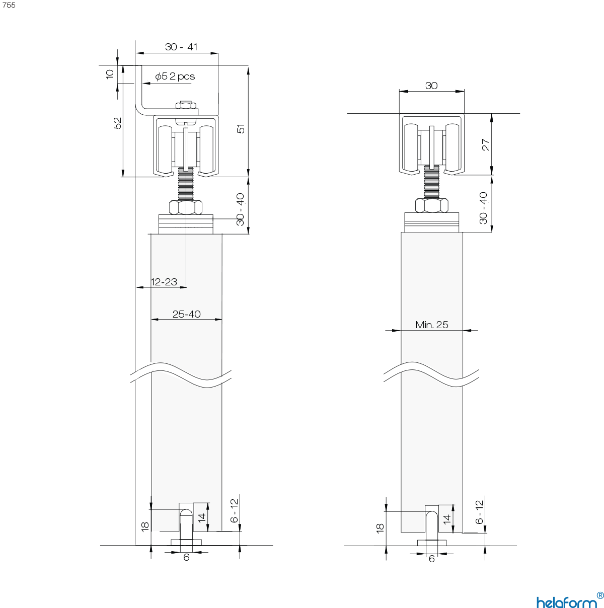 min. 25 mmSliding door hanger for timber sliding doors for 75 series sliding door systems.