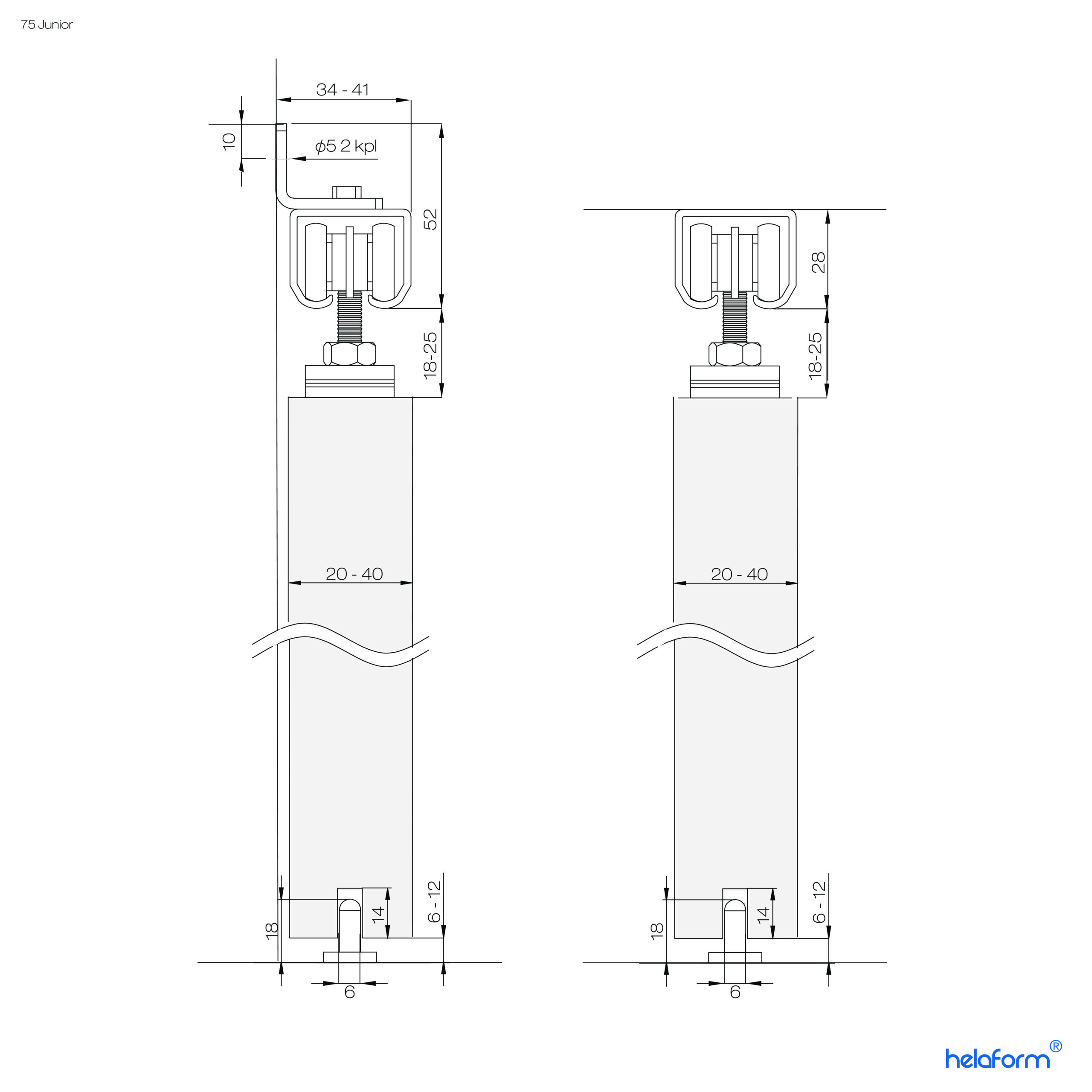 75 Junior series is used in light wardrobe and cupboard sliding doors, where there is limited space for the track.