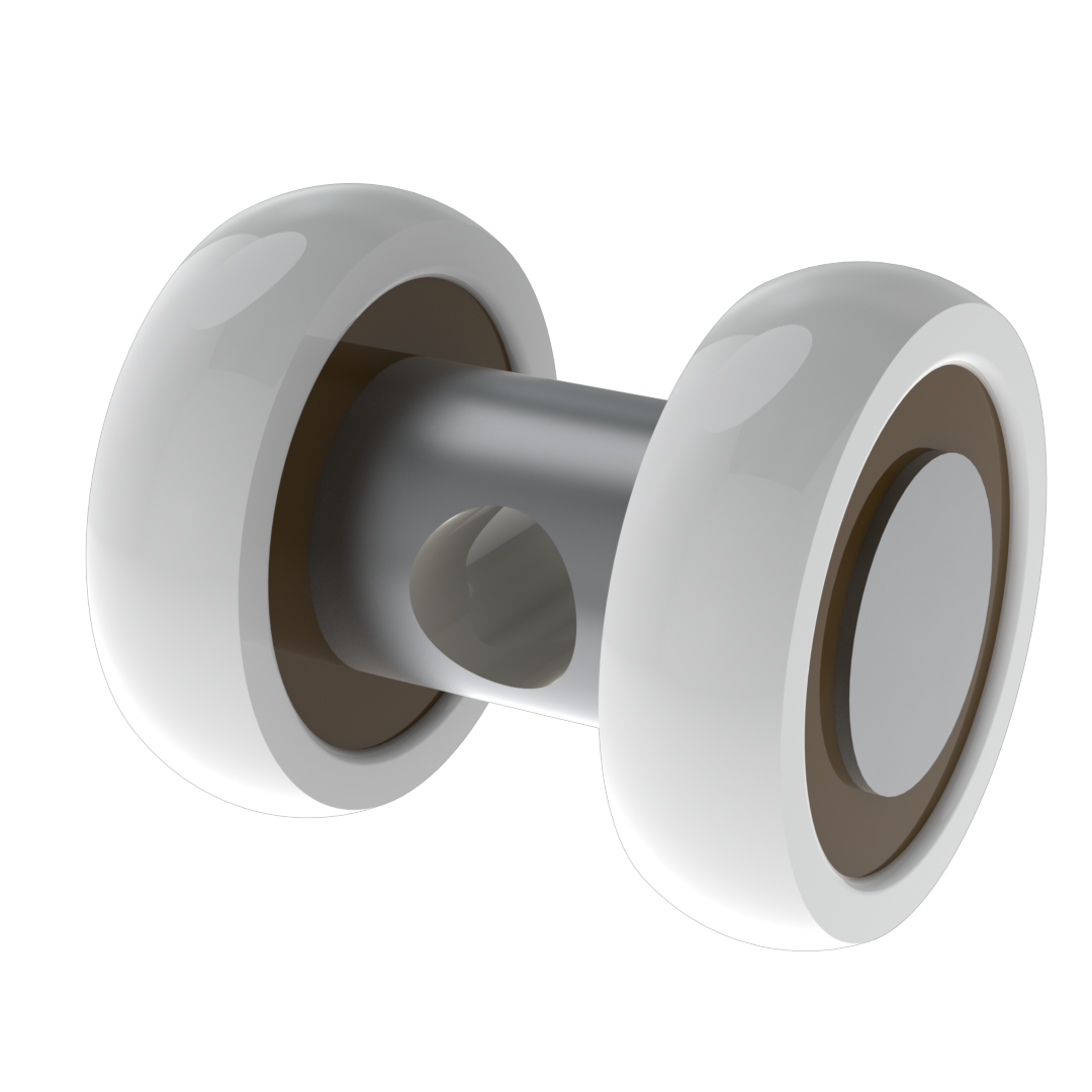 body: Zamak (zinc/aluminium), wheel: nylon coated ball bearingSliding door hanger for metal sliding doors for 75 Junior series sliding door systems.